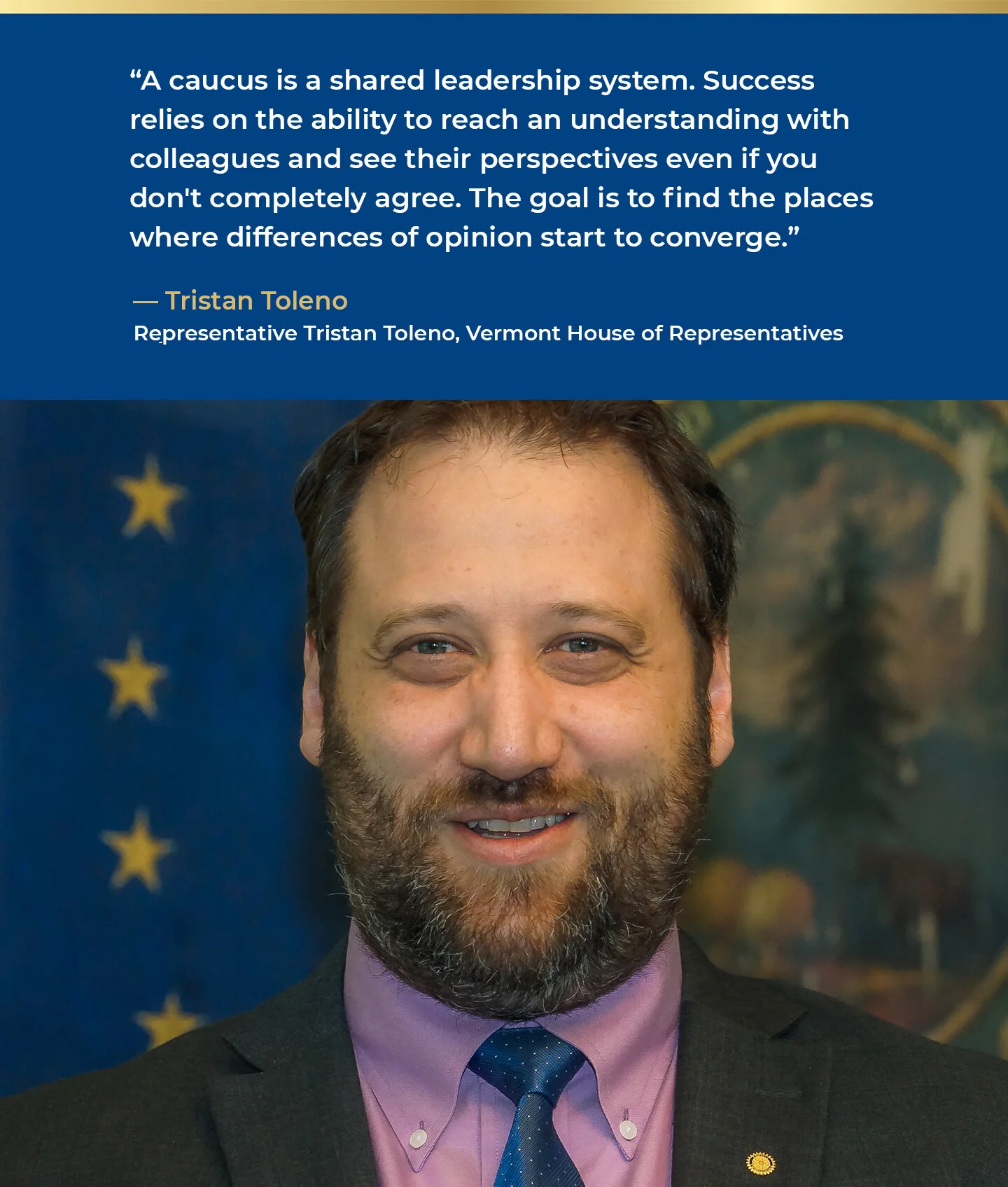 When Representative Tristan Toleno began his Shared Leadership Journey, little did he know that he would apply his learning as a Vermont State Legislator.